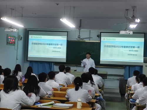 青年医学生是未来医疗事业的主力军,肩负着国家、民族及社会赋予的责任。在党的二十大即将召开之际,为进一步落实立德树人的根本任务,加强高年级学生医德医风教育,强化学生职业使命感、责任感,临床学院党委在2022年春季开学之际组织开展以“医德医风教育”为主题的“开学第一课活动”。2月24日向承德医学院附属医院、承德市中心医院、辽宁朝阳市中心医院、解放军981医院、保定市第二医院、保定市第二中心医院、保定市第一中心医院、衡水哈励逊医院、沧州市人民医院、邢台市人民医院、秦皇岛第一医院、邯郸市第一医院共12家医院发出通知,组织指导开展以“重温医学生誓词”及医德医风教育为主题的“开学第一课”活动。 医德医风教育是医学生成长道路上的必修课,是强化医学生职业生涯教育培养中不可或缺的环节,对医学生思想和价值引领发挥重要作用。各附属医院接到通知后高度重视,迅速行动,于2月27、28日两天内迅速组织并开展了包括思想政治教育、重温医学生誓词、驰援武汉抗疫先锋讲座、医德规范、廉洁行医准则、“只争朝夕,发愤图强,做新时代合格的医学生”等内容的新学期“开学第一课”,为新学期临床教育教学工作奠定高质量的开端。 本次活动的开展,强化了青年学生的爱国情怀,进一步引导同学坚定“四个自信”,坚决做到“两个维护”,不仅让同学们认识到医德医风的重要性,感叹抗疫的艰险,更学习到了不怕牺牲、勇于奉献的大爱精神,也使同学们认识到将来作为一名合格的医生要自觉养成高尚的医德,践行敬佑生命、救死扶伤、甘于奉献、大爱无疆的精神,在国家和人民需要的时候临危不惧、勇于担当,牢固树立全心全意为人民服务的思想,一切以病人为中心,一切为病人服务。同学们纷纷表示一定会牢记医学生誓言,不辞艰辛,执着追求,为祖国医药卫生事业的发展和人类身心健康奋斗终生! (点击每张图片即可查看原图)