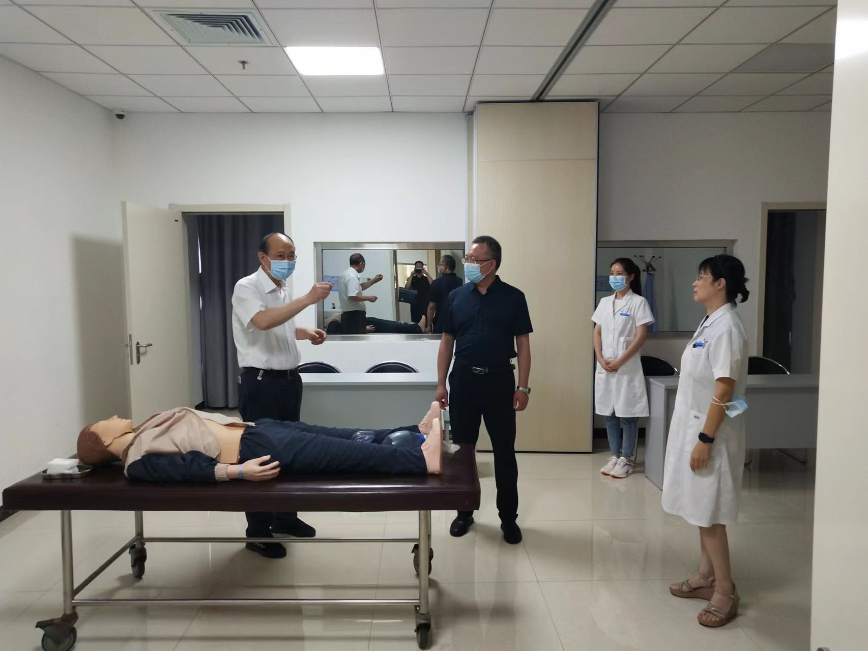 查看学生教室 拓展医院资源,为新专业教学基地建设做好准备 随着我校专业建设不断取得新突破,需要进一步拓展医院资源,为后续专业提前谋划。除走访我校现有的非隶属附属医院和教学医院外,还走访了中国人民解放军第82集团军医院(252医院)、保定市妇幼保健院、北京儿童医院保定分院,了解医院基本情况、优势学科,就口腔医学、儿科学、医学检验技术新专业实习基地建设考察了基地的专业师资队伍、科室设置和教学条件。