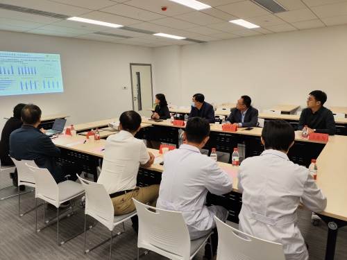 在附属衡水市人民医院新院区合影留念 我校与附属衡水市人民医院、沧州市人民医院自2019年开始高年级理论教学合作,每年承担250余名学生的理论教学、见习及实习教学任务。走访过程中分别听取两家医院的临床教学工作汇报,教务处张雷介绍了学校的发展历程及教学相关情况,并布置了下一阶段重点工作,临床学院赵连志结合临床学院具体职能,讲解了本学期相关工作安排,校院双方进行深入座谈交流,针对教学过程中存在的问题展开讨论,并实地考察了两家医院相关科室、教室、自习室、学生宿舍、食堂、临床技能中心等教学资源。