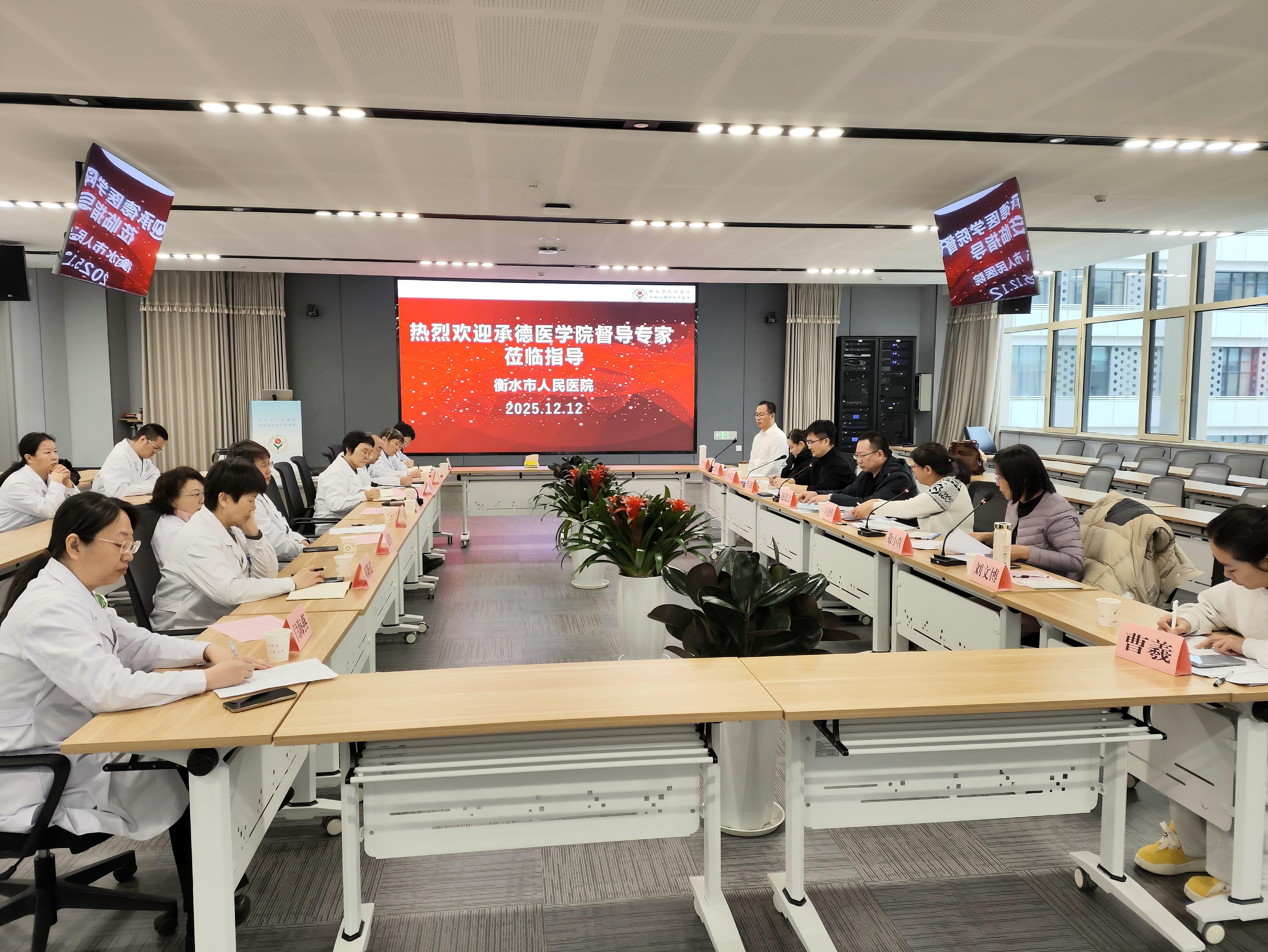 为全面贯彻党的教育方针,落实立德树人根本任务,强化人才培养中心地位,深化医教协同机制,切实推动各教学医院将工作重心落于提升临床教学质量,进一步推进临床教学基地同质化建设,12月12日,承德医学院临床学院院长赵连志带领专家组及教学管理人员一行9人,到衡水市人民医院(哈励逊国际和平医院)开展临床教学督导工作,院党委副书记、院长曹双清出席教学督导反馈会。
