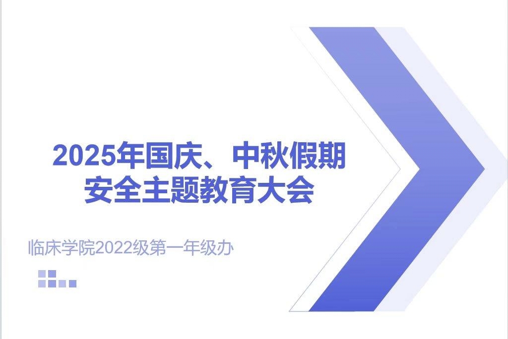 筑牢安全防线,欢度平安假期。为切实增强学生安全意识,提升自我防范能力,确保全体同学度过一个愉快、充实、有意义的假期,临床学院2022级第一年级办于2025年9月28日通过线上会议形式,组织召开国庆、中秋假期安全主题教育年级大会。会议由辅导员张伟、王新共同主持,临床学院2022级第一年级办全体学生参加。 会议伊始,张伟围绕假期安全核心事件展开教育。在网络安全方面,她提醒同学们要警惕各类电信诈骗,做到文明上网,理性发言,避免因不当言论造成不良影响。在宿舍安全方面,她要求各班在假期前组织开展宿舍安全检查,及时消除安全隐患,严禁使用违规电器,并特别叮嘱留校同学离开宿舍时务必锁好门窗,妥善保管贵重物品。在出行安全方面,她强调要选择正规购票渠道和合法交通工具,积极配合离返校登记工作,外出行程需及时告知家长,自觉远离危险水域,确保人身安全。